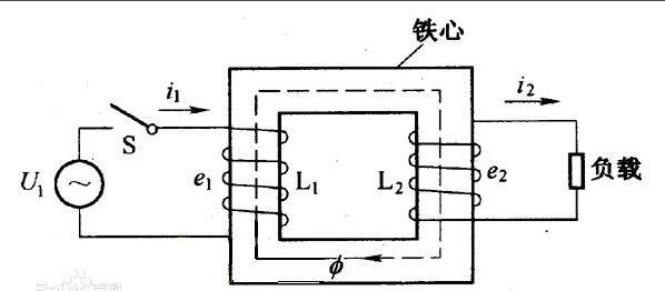 铁心的作用是加强两个线圈间的磁耦合。为了减少铁内涡流和磁滞损耗,铁心由涂漆的硅钢片叠压而成;两个线圈之间没有电的联系,线圈由绝缘铜线(或铝线)绕成。一个线圈接交流电源称为初级线圈(或原线圈),另一个线圈接用电器称为次级线圈(或副线圈)。实际的变压器是很复杂的,不可避免地存在铜损(线圈电阻发热)、铁损(铁心发热)和漏磁(经空气闭合的磁感应线)等,为了简化讨论这里只介绍理想变压器。理想变压器成立的条件是:忽略漏磁通,忽略原、副线圈的电阻,忽略铁心的损耗,忽略空载电流(副线圈开路原线圈线圈中的电流)。例如电力变压器在满载运行时(副线圈输出额定功率)即接近理想变压器情况。