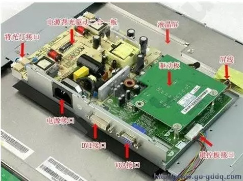 把输入的电信号转为可以显示在屏幕上的的图像信号。驱动板通常与液晶层用软性线路连接在一起不可分离。