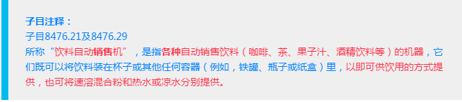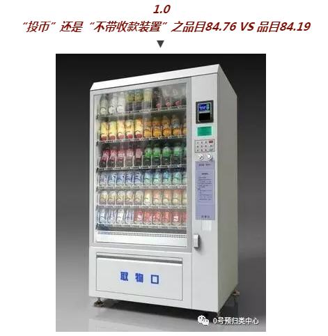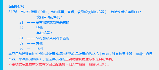 小伙伴们有木有感觉到,品目84.76饮料自动销售机将品目84.19的不带收款装置的热饮或冷饮自动配售机排除