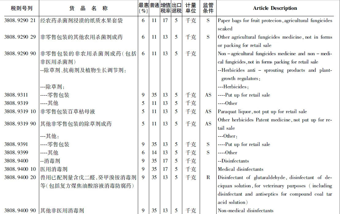 税则描述 协调制度中对于“杀菌剂”和“消毒剂”的定义如下: