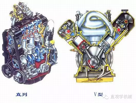 内燃机按照气缸排列方式不同可以分为单列式和双列式。单列式发动机的各个气缸排成一列,一般是垂直布置的,但为了降低高度,有时也把气缸布置成倾斜的甚至水平的;双列式发动机把气缸排成两列,两列之间的夹角<180°(一般为90°)称为V型发动机,若两列之间的夹角=180°称为对置式发动机。