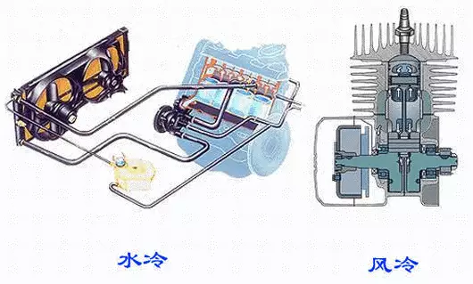 内燃机按照冷却方式不同可以分为水冷发动机和风冷发动机。水冷发动机是利用在气缸体和气缸盖冷却水套中进行循环的冷却液作为冷却介质进行冷却的;而风冷发动机是利用流动于气缸体与气缸盖外表面散热片之间的空气作为冷却介质进行冷却的。水冷发动机冷却均匀,工作可靠,冷却效果好,被广泛地应用于现代车用发动机。