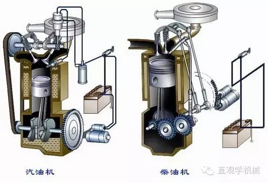 内燃机按照所使用燃料的不同可以分为汽油机和柴油机。使用汽油为燃料的内燃机称为汽油机;使用柴油机为燃料的内燃机称为柴油机。汽油机与柴油机比较各有特点;汽油机转速高,质量小,噪音小,起动容易,制造成本低;柴油机压缩比大,热效率高,经济性能和排放性能都比汽油机好。