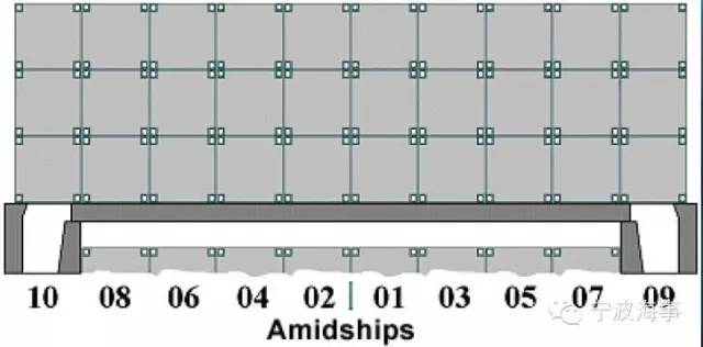当总列号为偶数时,首尾线上没有箱格,右舷或左舷箱格的列号同上,用编号01,03,05,07...或02,04,06,08表示,