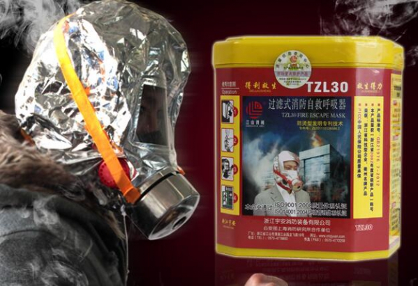 这种自救器在公共场所和酒店里面经常可以看到,它带有过滤装置,未外连氧气罐,完全符合品目90.20的定义
