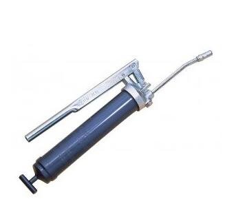 黄油枪是一种给机械设备加注润滑脂的手动工具。它可以选装铁枪杆(铁枪头)或软管(平枪头)加油嘴。对加油位置方便处于空间宽敞的地方可用铁枪杆(铁枪头),对加油位置隐蔽,拐弯抹角的地方就必须用软管(平枪头)来加油。本品具有操作简单,携带方便,使用范围广的诸多优点,是广大农机手,维修中心的必备工具。目前黄油枪主要由手动和电动两种,本案中所涉及的均为手动黄油枪。(手动操作程序见上图)