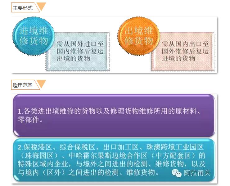 修理物品主要分为进境维修货物和出境维修货物,适用范围主要有两大类: