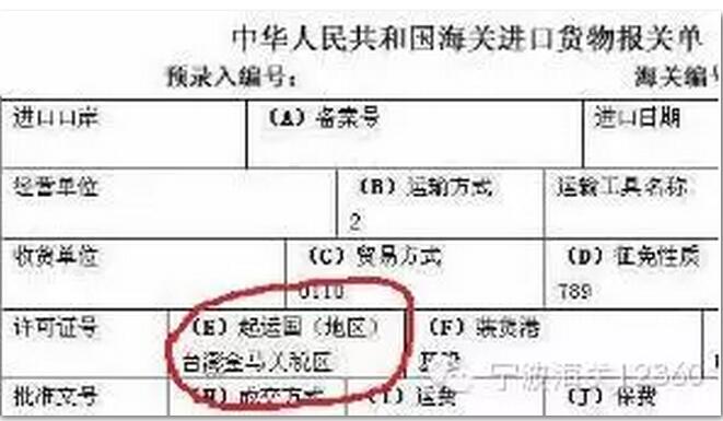 某企业申报一批从台湾到宁波的货物,起运国填制为“中国台湾”。