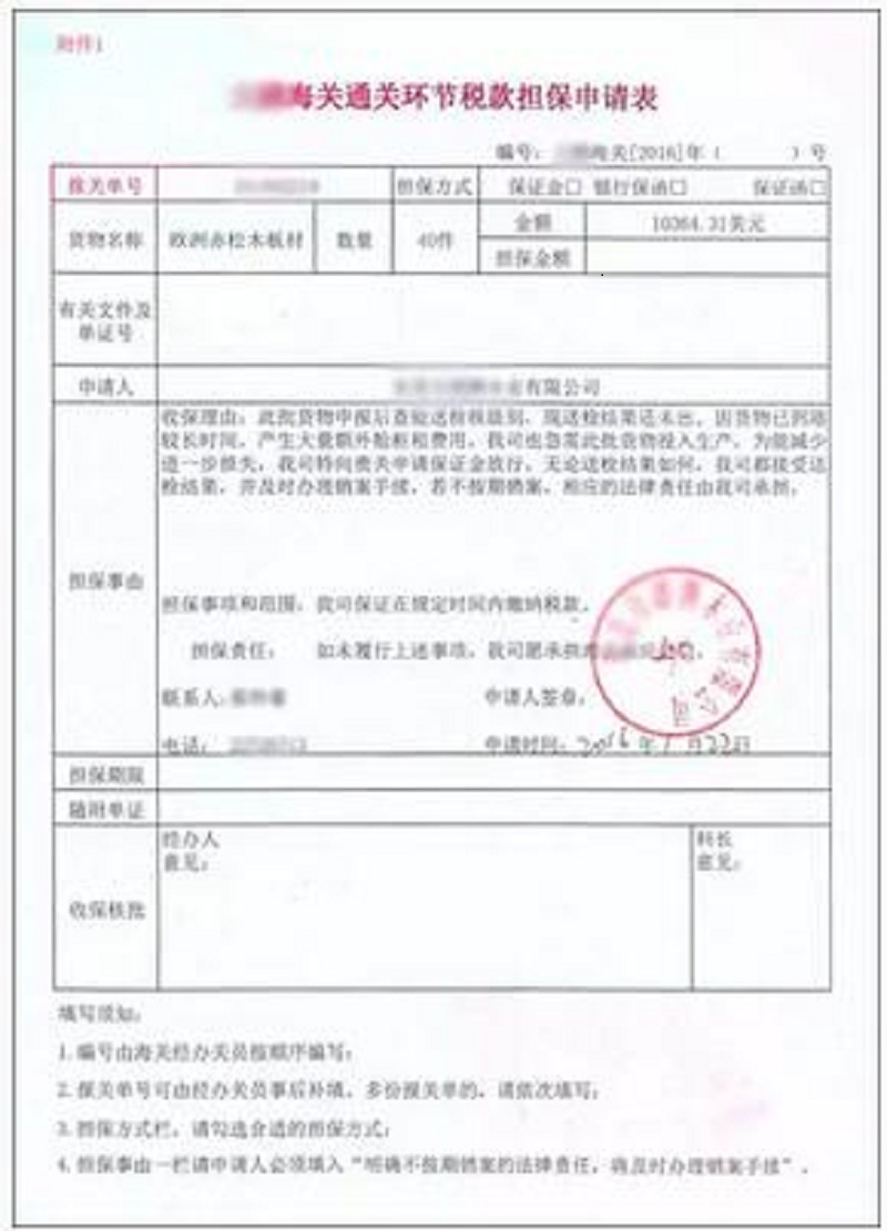 22日收货人向查验科正式递交“通关环节税款担保申请表”, 经办关员表示:今天是周五(22日)了,估计等领导批下来,货物也差不多要放行了,将申请表搁置不办。