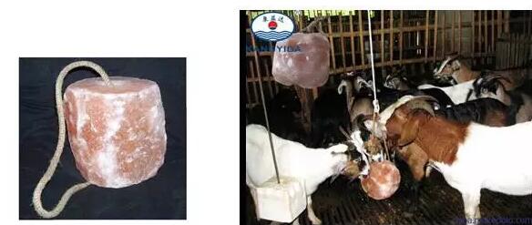 ▷ 商品三:矿盐的氯化钠含量95%以上,含有微量元素,动物通过舔食补充盐分。该商品经过穿孔(贯穿)的工艺。动物的舔食盐块有很多种类,一种是适合牧场放养动物用的牧场主在草原的几个地方插上棍子,将这个盐块套在上面,牲畜围过来舔食。另一种是将矿物盐块吊到房顶上,利用孔插上固定木棒绑上绳子吊在房梁上供畜牧舔食。图如下▼
