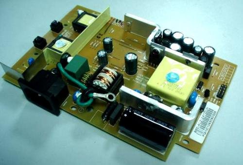 直流稳压电源(功率小于1千瓦、精度低于万分之一且用于自动数据处理设备以外用途),这种稳压电源可以是一块焊接或安装有多种电子元件的电源板也就是由多种电子元件,比如电容器、电阻器、电感器、集成电路、二极管、晶体管、发光二极管、滤波器、变压器、可控硅整流模块、连接端子、通信接口等等等焊接在印刷电路板上购车功能。也就是一块未装配外壳的电源板,类似下图。