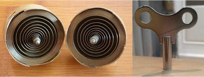 类似第三种座钟,小编小时候也是玩耍过的。印象里的半点响一次,其他整点就敲打相应的时间,最多12下。走着走着钟就慢了,小编以为钟老了……后来才知道原来是需要上弦的额,诺,就需要用上弦钥匙来上发条。