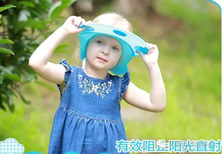 儿童的淋浴帽可以带有宽大的帽檐,防止洗头发时,水和香波进入到儿童的眼睛里去。