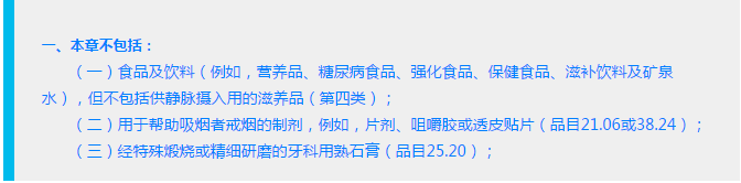 从上面的章注一(二)可以看出上面两款产品不归30章,那么上面的戒烟贴跟戒烟咀嚼胶到底该归2106还是3824呢?呵呵,看来问题还没有这么快结束,继续查找依据,小编发现二十一章标题是杂项食品,也就是说戒烟咀嚼胶建议归到2106,而戒烟贴因为不是食品建议归到3824.
