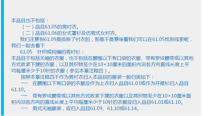品目61.02和品目61.01唯一的区别就是品目61.01是男装,品目61.02是女装。