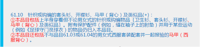 那么问题又来了,归入品目61.01的背心很好区分,那么在什么情况下改归入品目61.10呢,