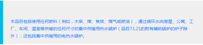 显然该注释与小编所说的壁挂炉是相符合的,为了进一步证实这个观点是正确的,小编通过英文版品目注释对热水锅炉做了相关的考证。