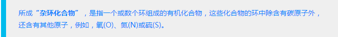 什么是杂原子呢?即环状化合物中的非碳(C)原子,注意是处于环上的非碳原子,而非环外。