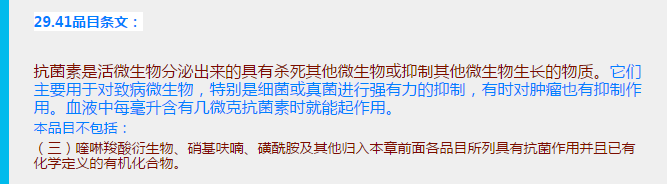 既然它是抗菌药,那是否可以按照用途将其归入品目2941.90的抗菌素项下?