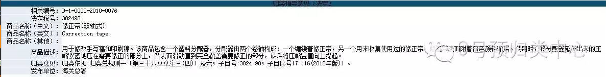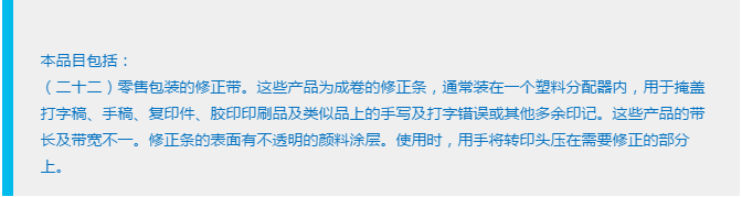 在确定最后的归类之前,解决大家的最后一个疑问。暖手袋不是零售包装的吗?怎么能按原料归到29章?其实大家可以看看关于修正带的归类决定: