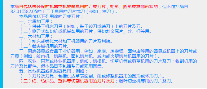 换句话说品目82.08必须是用于机器或机械器具上,通常是不能够单独使用的。分析到这里小编建议将其归入8208.9000项下。