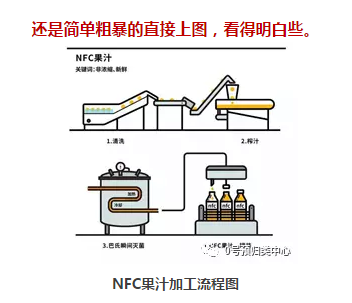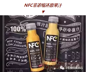NFC的全称是Not From Concentrate,“未经浓缩还原”的意思。也就是说,你在瓶子里见到的果汁,就是从水果榨出来的原汁,不掺水。