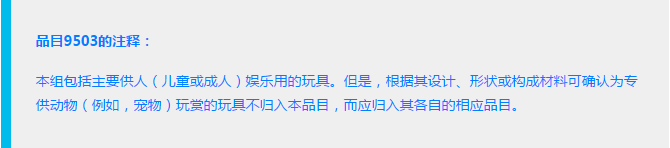 归类思路:宠物的玩具可以归到品目9503项下吗?我们来找找品目注释是如何描述的吧,在95章的章注并没有提及到宠物用品的归类: