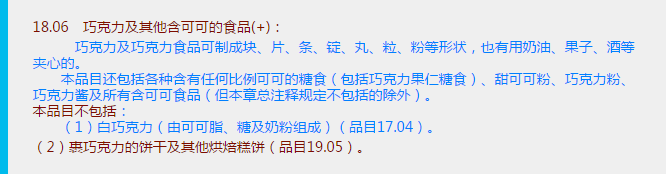 所以根据英文注释来判断,我们的这款产品还是符合第18章的排除项“裹巧克力的饼干及其他烘焙糕饼(品目19.05)”的,在第18章可可制品的排除范围内。