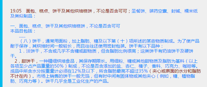 由上可知,饼干表面巧克力的脂肪是不计在内的。这下子,小编可算是给它安家了,小编建议将这款好吃又卖相满分的巧克力饼干归入税则号列1905.3100。