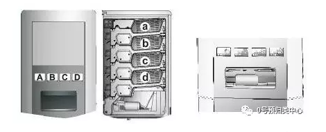 a、b、c、d槽,通过A、B、C、D按键,即可在输送槽前端开门处取出相对应的饮料。