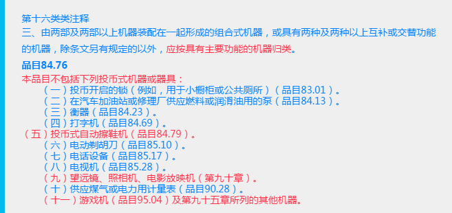 间隔这么久真怕大家忘了俺们自动售货机家族,所以在这里把容易混淆的总结一下,也算是和自动售货机——咖啡机的商品归类篇(中)对品目84.76的呼应吧。忘了为啥这样归类的小伙伴记得翻回去看看哦~
