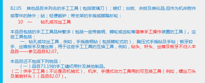 在这里我们又发现了一个有趣的问题,品目82.05与品目82.07都提及有“手工工具”,那么这两个品目所说的“手工工具”又有什么区别呢?