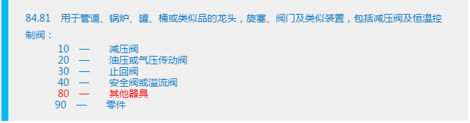 小编想到第八十四章有关于阀门类产品的品目,于是分析到品目84.81 :