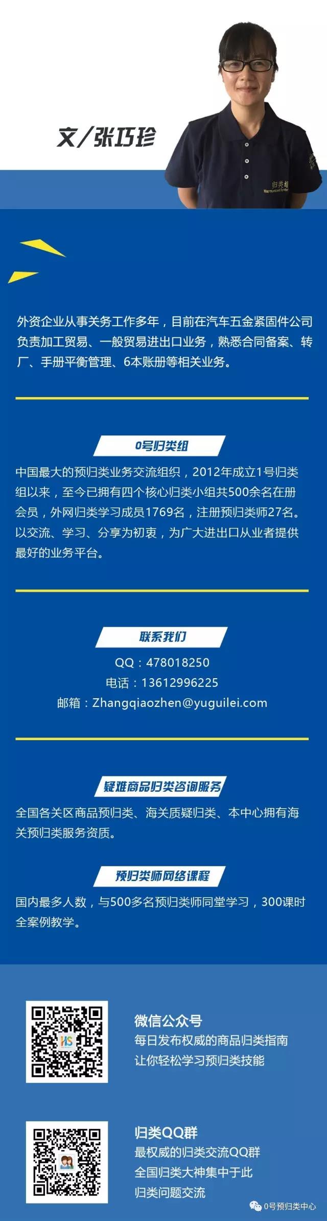 小编在深圳一家汽车五金件制造的外资企业上班,公司有时会有一些机电设备上的零部件进口,每次说到要进口时,总会感觉不知所措,对产品归类无从下手。无意中朋友说精英网的果子报关、归类课程浅显易懂。于是也就决定加入了这个大的队伍中来,开起小编的归类之旅。和0号归类中心其他同志一样脑洞大开,吃不断。而且如果没有足够的耐心、信心,真的没有办法完成这个归类重任。
