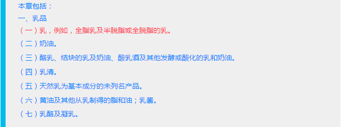 通常第四章的乳品包括新鲜乳或经简单加工的乳,其他章的乳品是用第四章的乳品经混合或进一步加工制成的。