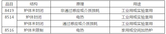 注: 第三项中提及的炉体未封闭指的是非电热炉、通过感应或介质损耗的,归入子目 8514.4000 项下的产品。