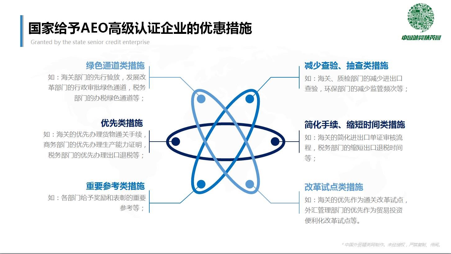 各政府部门也都意识到了这个问题。所以,11月1日,由国家发展改革委、人民银行和海关总署牵头, 中央宣传部、中央文明办、商务部等40个中央部门联合签署的《关于对海关高级认证企业实施联合激励的合作备忘录》印发实施。这标志着各大进出口企业、贸易公司、供应链公司、货代公司和报关行,在获得海关AEO高级认证后,可享受各行业主管部门多达49项的优惠便利措施。